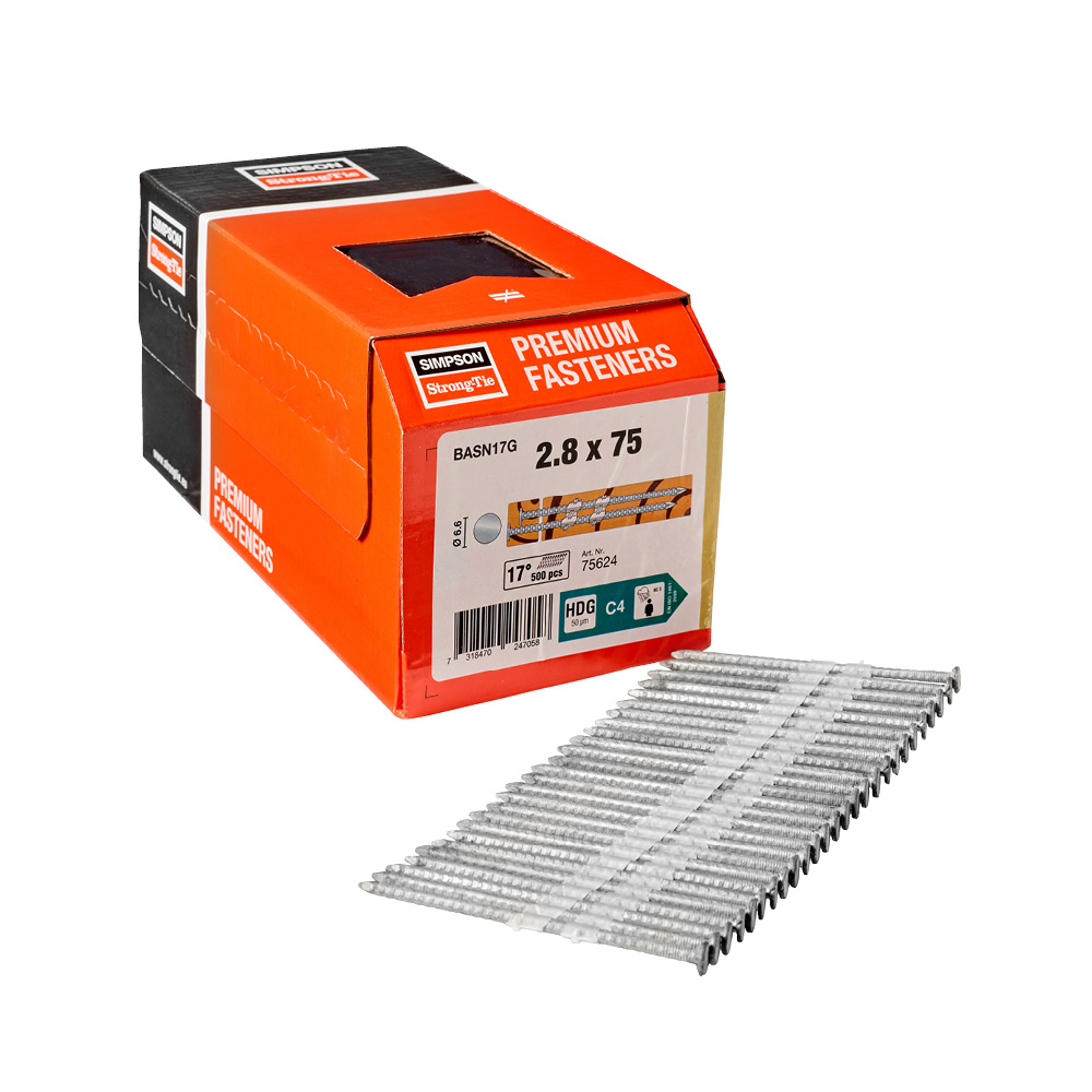 75624: Stavspiker 17° Plastbåndet, Rundt Hode, Kammet 2,8x75, antall: 500 stk, NOBB nr: 55841452