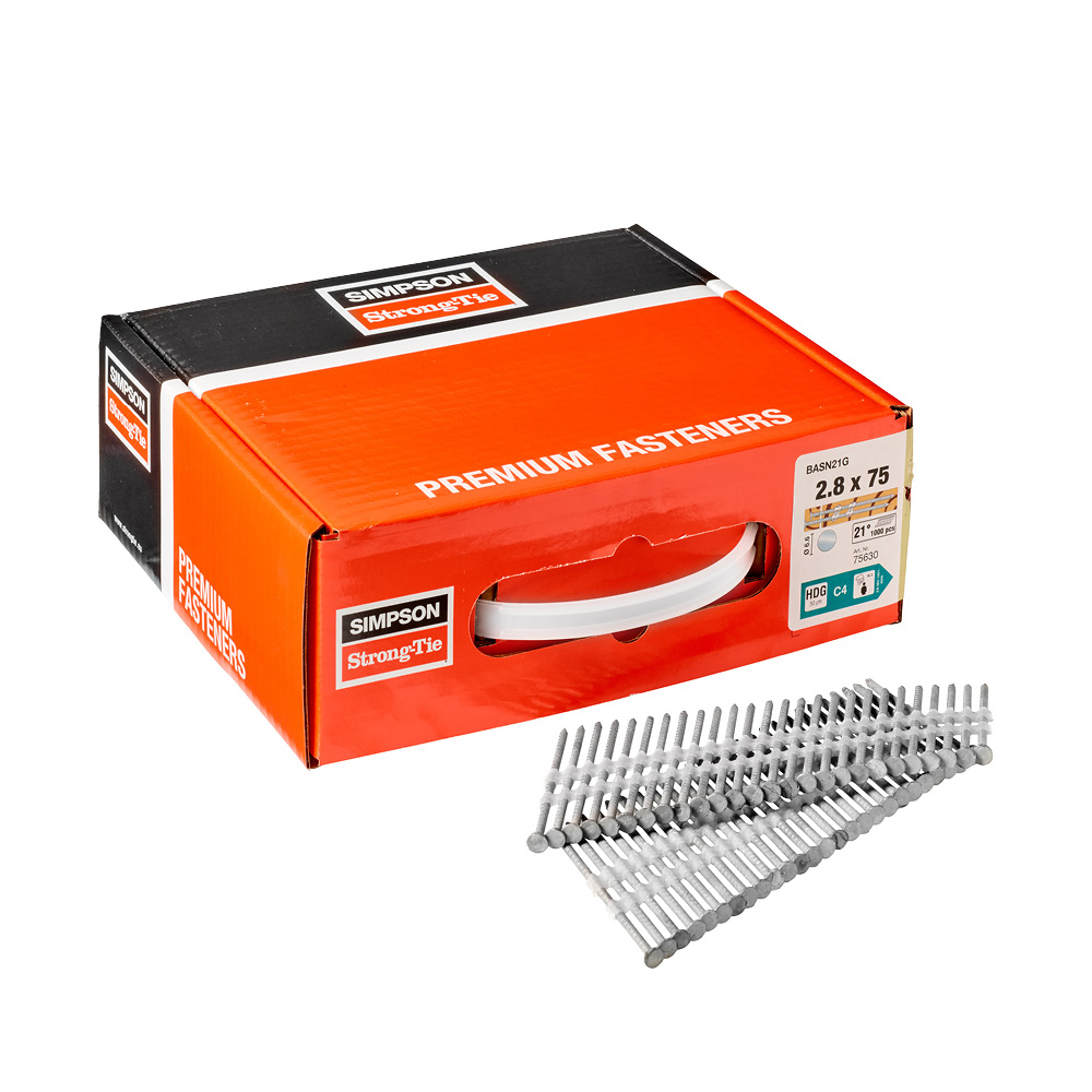 75630: Stavspiker 21° Plastbåndet, Rundt Hode, Kammet, 2,8x75, antall: 1000, NOBB nr: 55841501