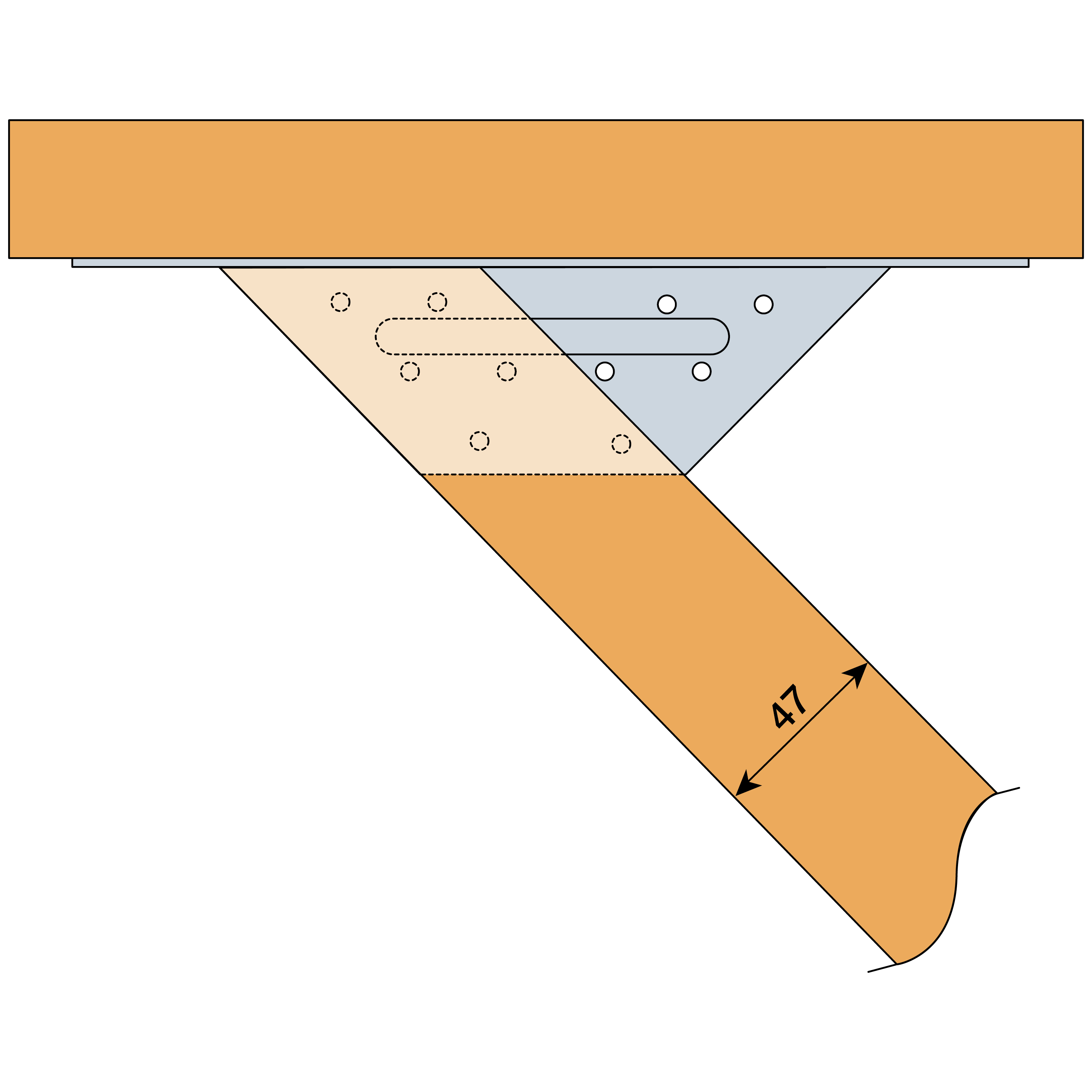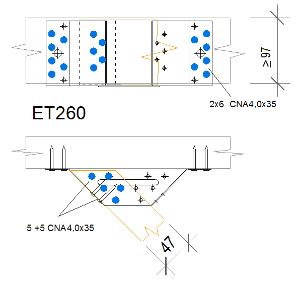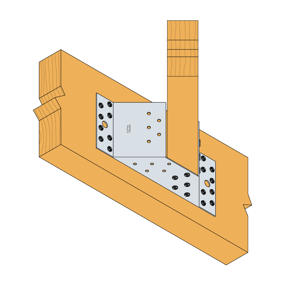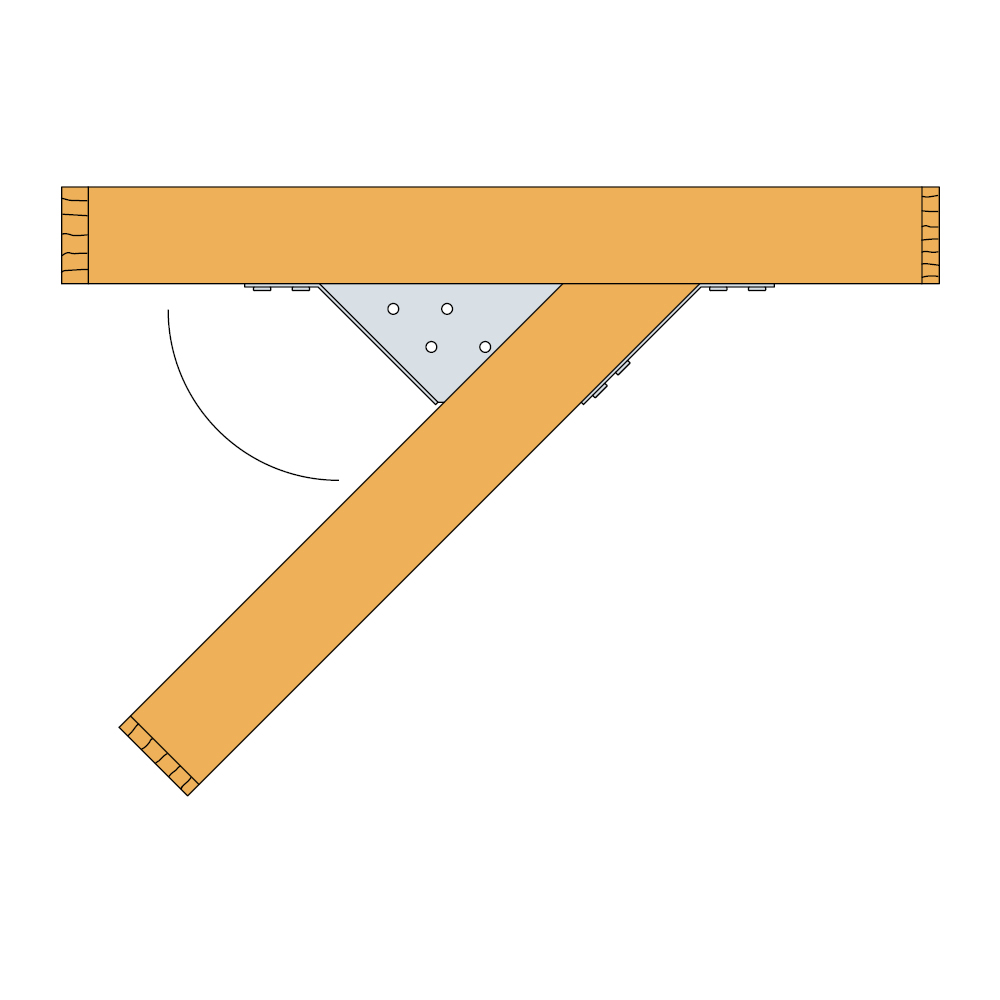 - Installasjonen egner seg til skjøter mellom bjelker med 45° vinkling horisontalt