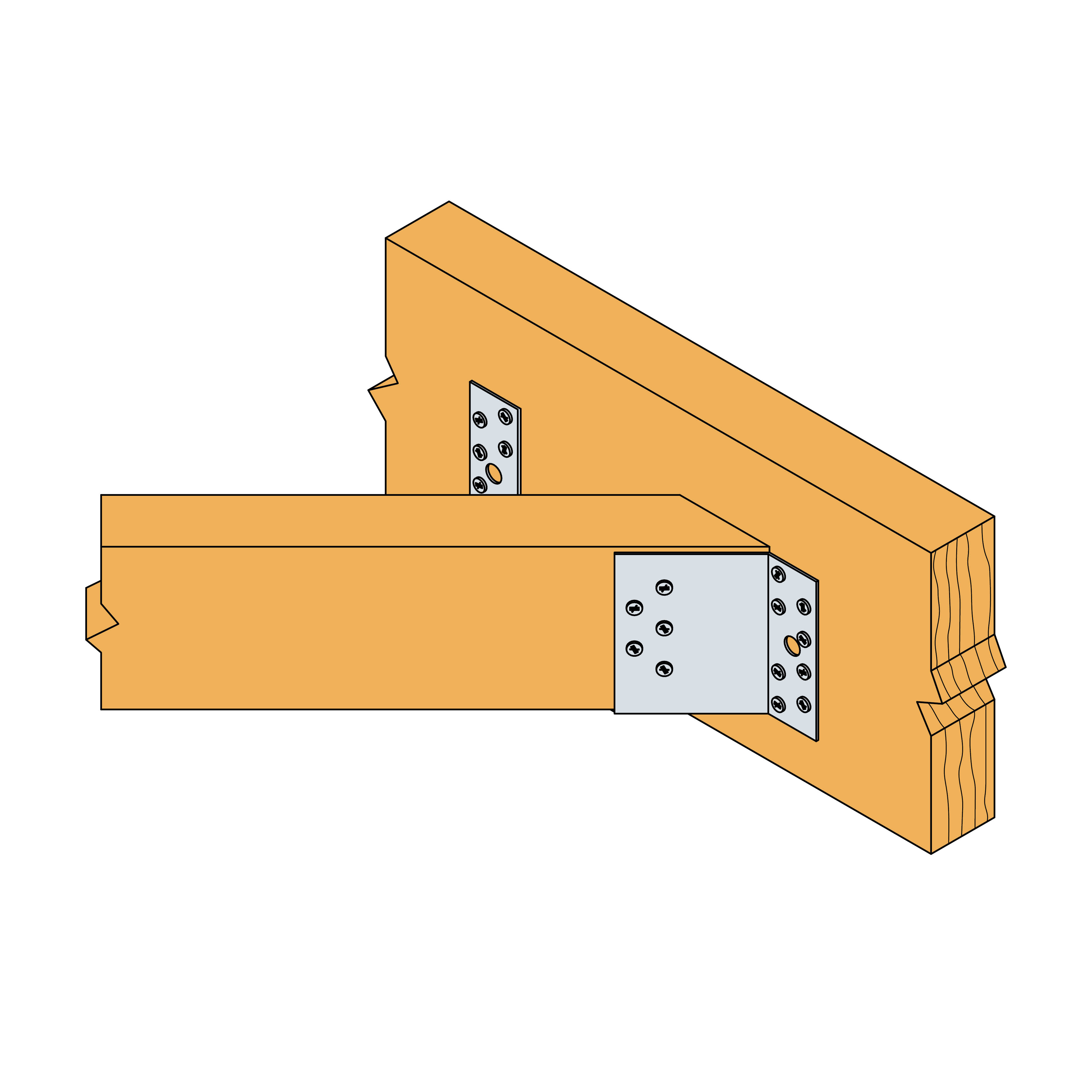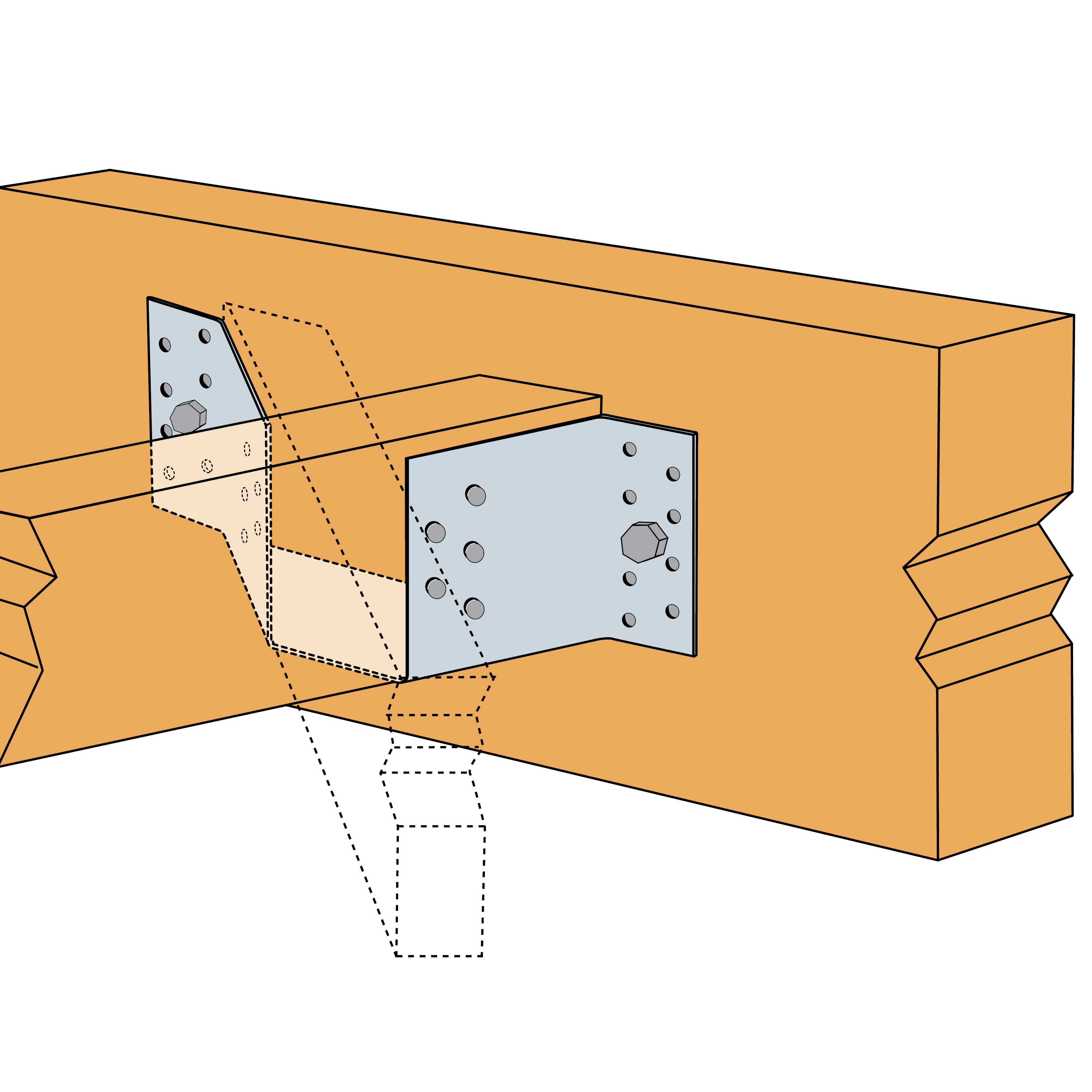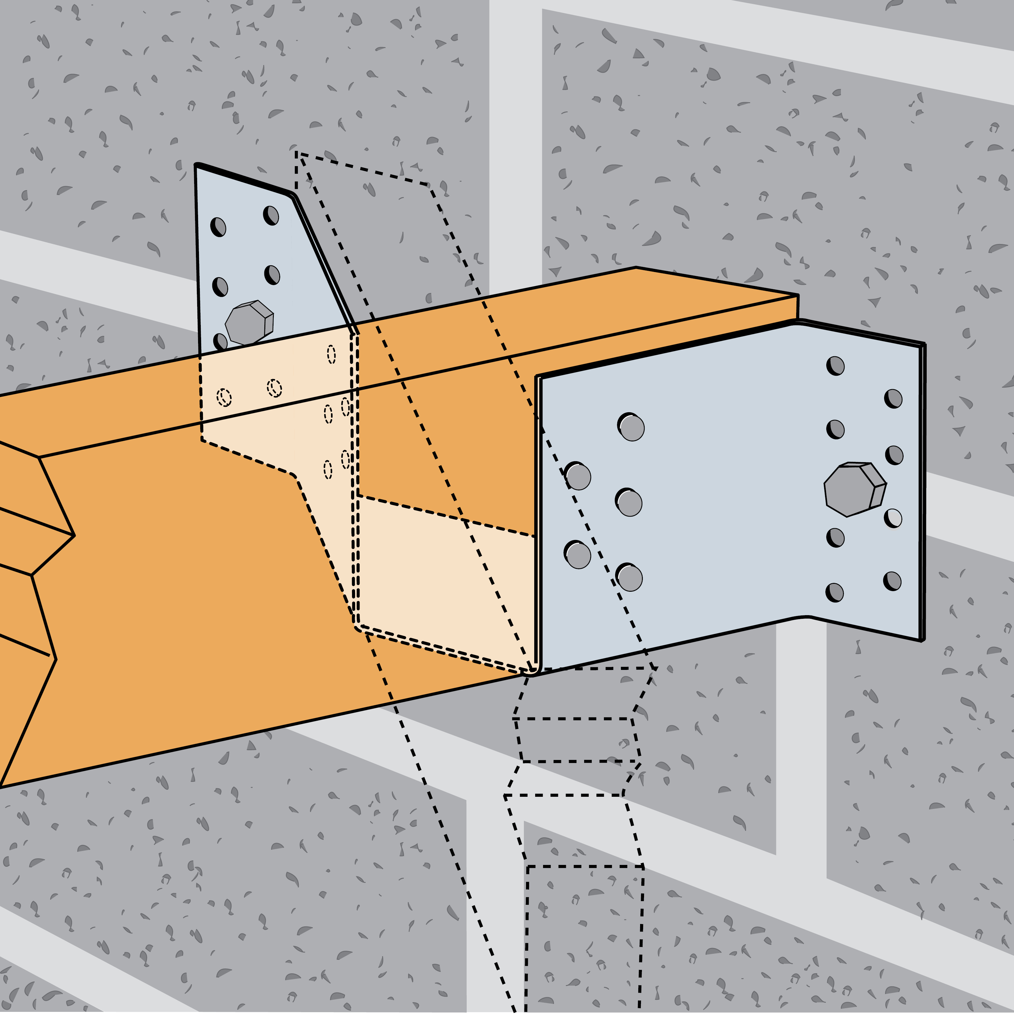 - Installasjonen egner seg til skjøter mellom bjelker med 45° vinkling horisontalt