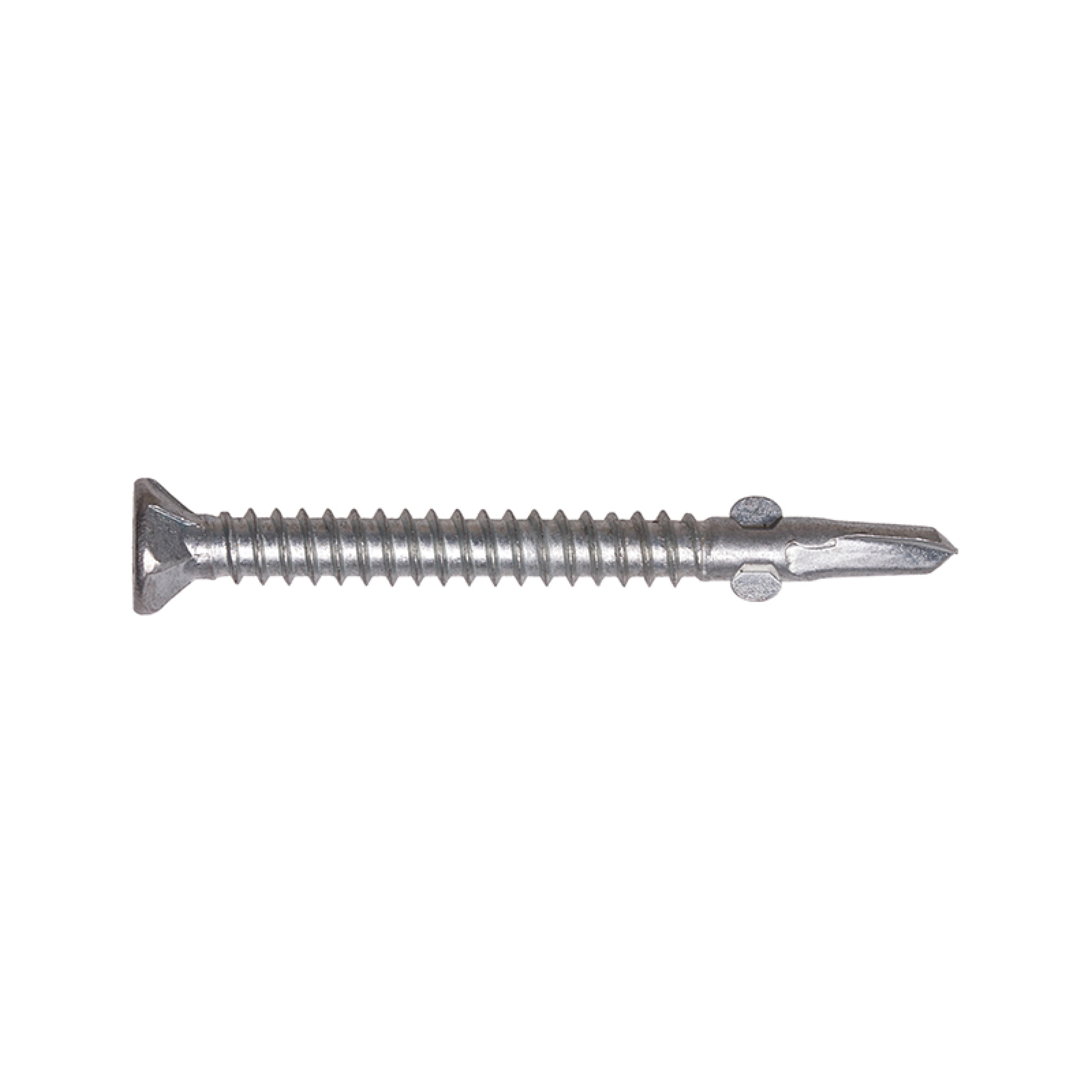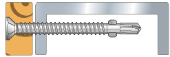 SSBFHSD Quik Drive båndet borwingskrue er designet for montering av trevirke til stål (0,9-4,0 mm ståltykkelse) Skruen er i Bi-metall hvor selve borspissen er av karbonstål som er sveist på den syrefaste delen. Det betyr at spissen skjærer gjennom stålet, samtidig som skruen opprettholder sin korrosjonsbestandighet.