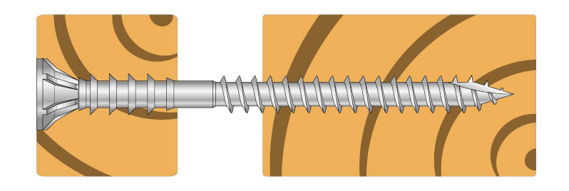 Montering i karmer og lekter. Skruens utformning med rette gjenger under hodet muliggjør avstandsmontering og justering. Hodediameter 12,0 mm. Skrues helt inn og justeres tilbake til ønsket posisjon.