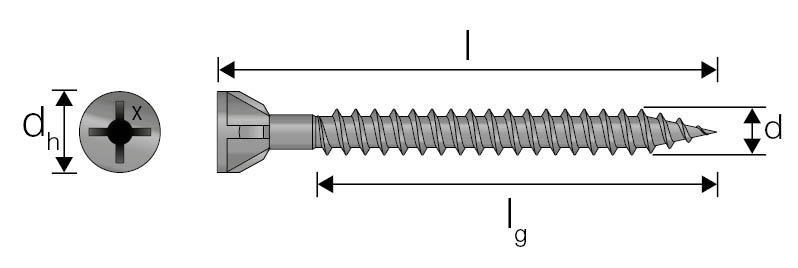 Skruer for montering av fibersementplater. Finnes i to varianter både som løs og som beltet. Skrue uten borspiss kan benyttes til trevirke og stål opp til 1 mm. Skrue med borspiss er beregnet til forsterket stål med tykkelse opp til 2 mm.