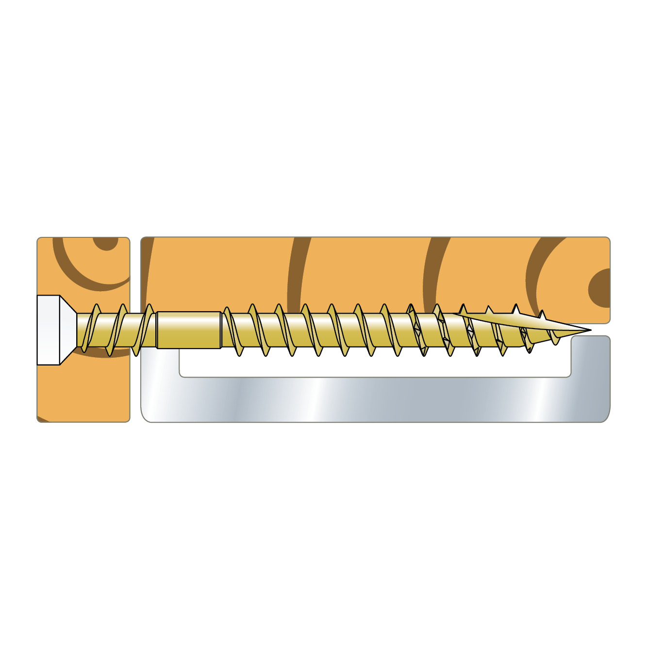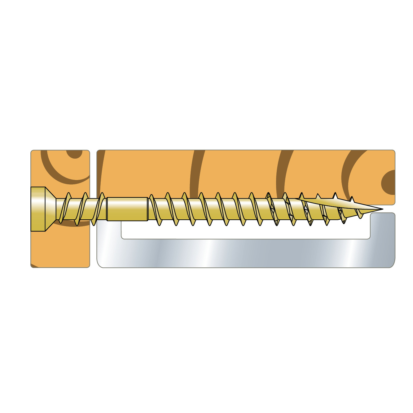Spesialskrue for montering av heltregulv. Spesielt lite hode med freseribber til enkel forsenking. Reversgjenger for hindring av knirk og sprekkdannelse ved senkning av skruehodet. Fungerer i tynne stålstendere, for feste av listverk. NB! 42 og 57 mm leveres også i hvit.