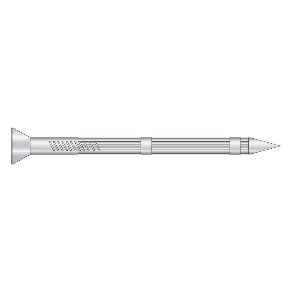 Herdet elektrolytisk forzinket spiker for feste i mur, betong og lignende harde materialer.