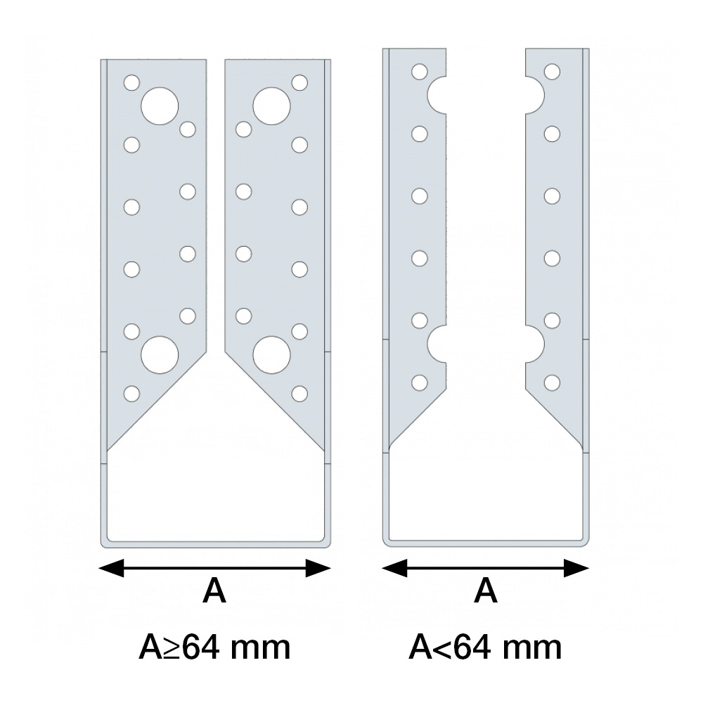 - Ved bjelkesko med bredder mindre enn 64 mm er flikene mot hovedbjelken (C-målet) halvert.