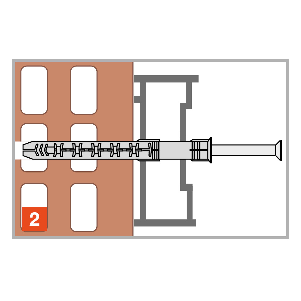 FM-X5 karmplugg i Ø8 og Ø10 mm med senkhode for allsidig montering i betong og murverk.