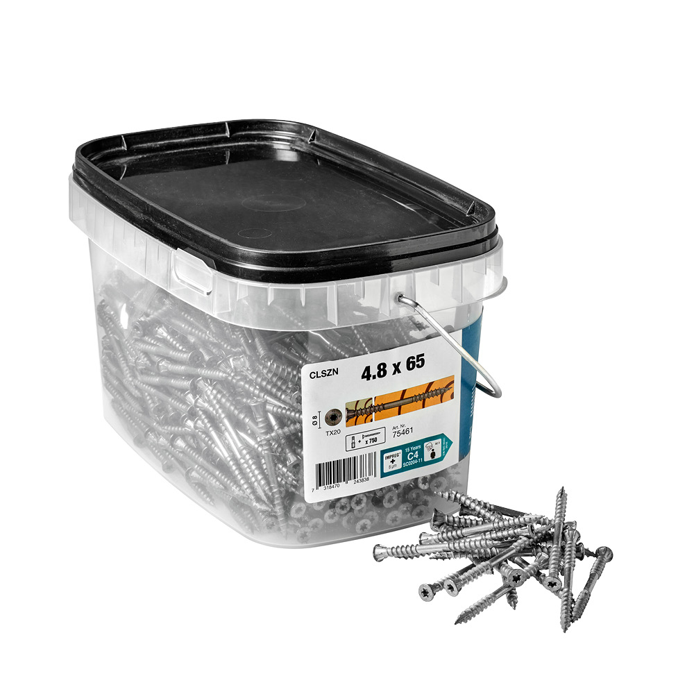 Til utendørs trekledning. Flatt hode med fiber lock teknologi beskytter treverket mot fuktighet, og doble gjenger sørger for tilstrekkelig feste selv i tette treslag uten fare for glipping.