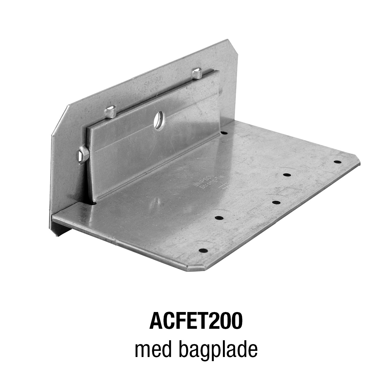 Beslagene brukes i toppen av lette veggelementer til fastholdelse i betong- eller lettklinkerbetongveggelementer (leca). Ved innfesting til betongelementer brukes ACFET200 vinkelbeslag og ved elementer i lettklinkerbetong brukes ACFET200PP vinkelbeslag.