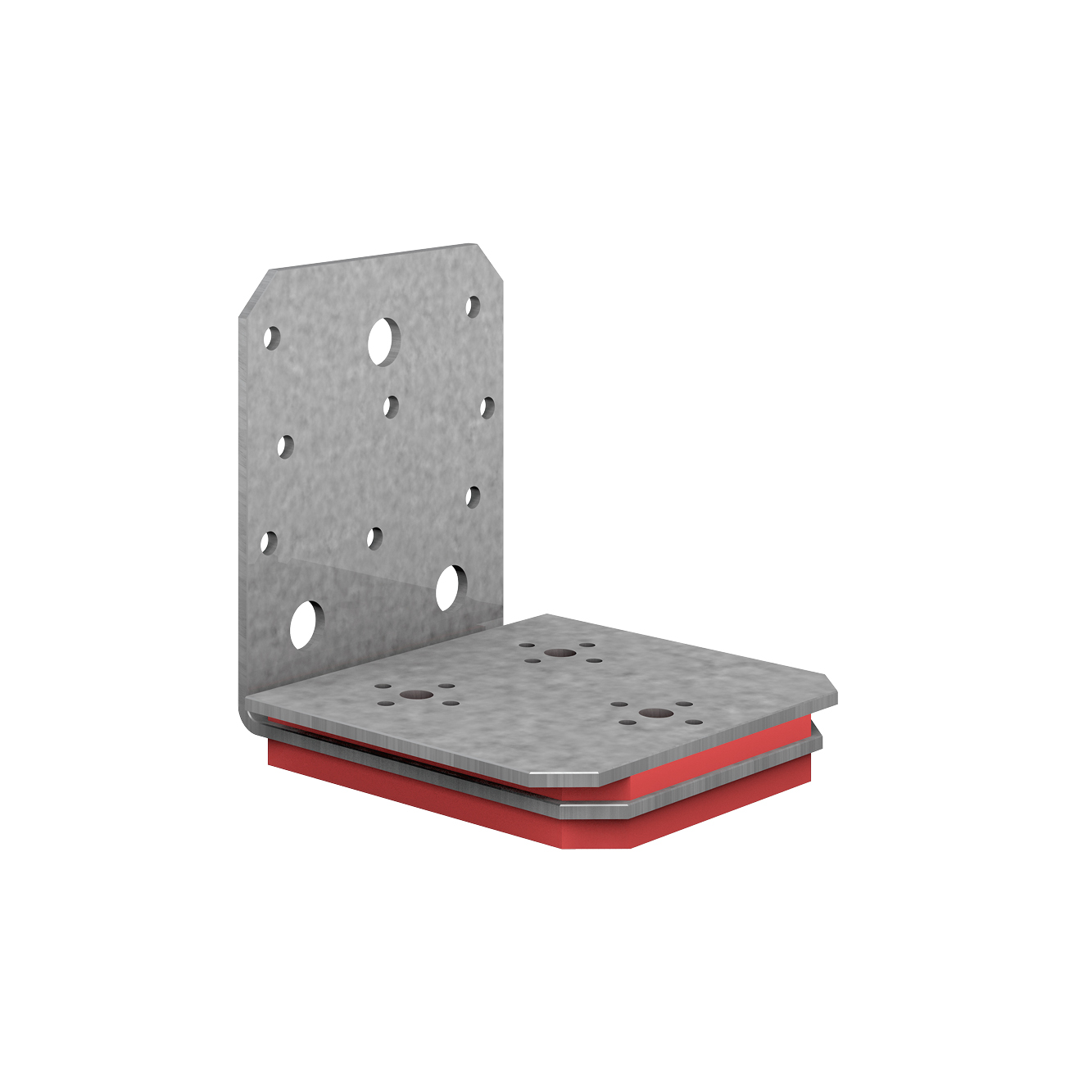ABAI105 er et nyutviklet bygningsbeslag som gir muligheten for en statisk bærende kobling mellom CLT gulv-, vegg- og loftselementer, som er lydisolert med et 12 mm lag av SIT.