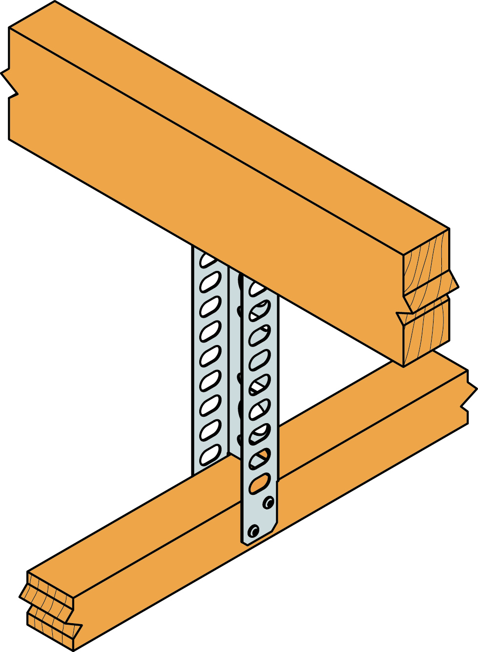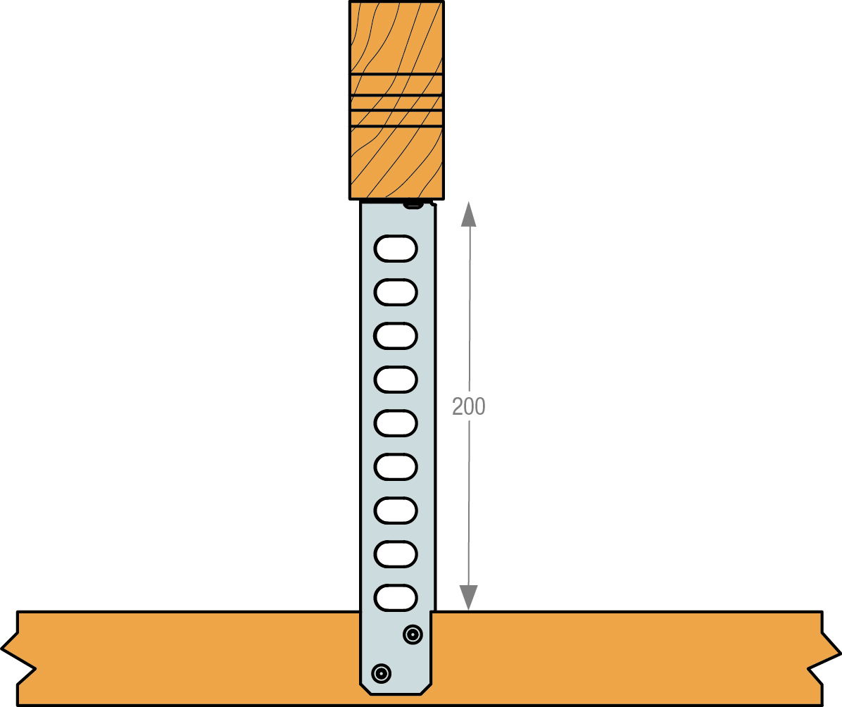 Nedforingsbeslag til senking av himlinger for tekniske installasjoner. Produktet er designet ut fra Eurocode 5, og overholder kravene til kantavstander.
