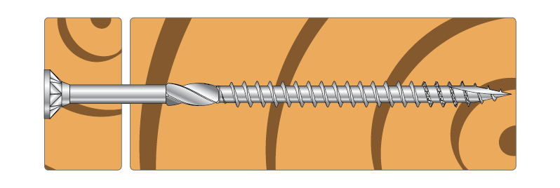 TTUFS med senkhode eliminerer den tradisjonelle forsenkingsjobben, da skruene selv er utstyrt med kuttende ribber under hodet. Forsenkingen virker i alle typer av materiale, også i plast. Ved hardere virke er effekten enda bedre og etterlater en perfekt forsenking. Ved at vinkelen på hodet er 40° vil skruen passe perfekt til alle forhåndsforsenkede hull. Fiberkuttet og de sagtakkende gjengene i tuppen av skruen hjelper til med å hindre sprekker, reduserer momentet ved innskruing og gjør all forboring unødvendig.