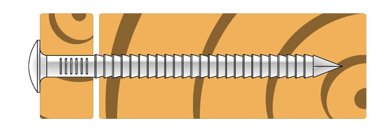 Rillet spiker med svakt koppet hode til montering av ulike materialer til tre, hvor det er behov for økt uttrekks kapsitet.