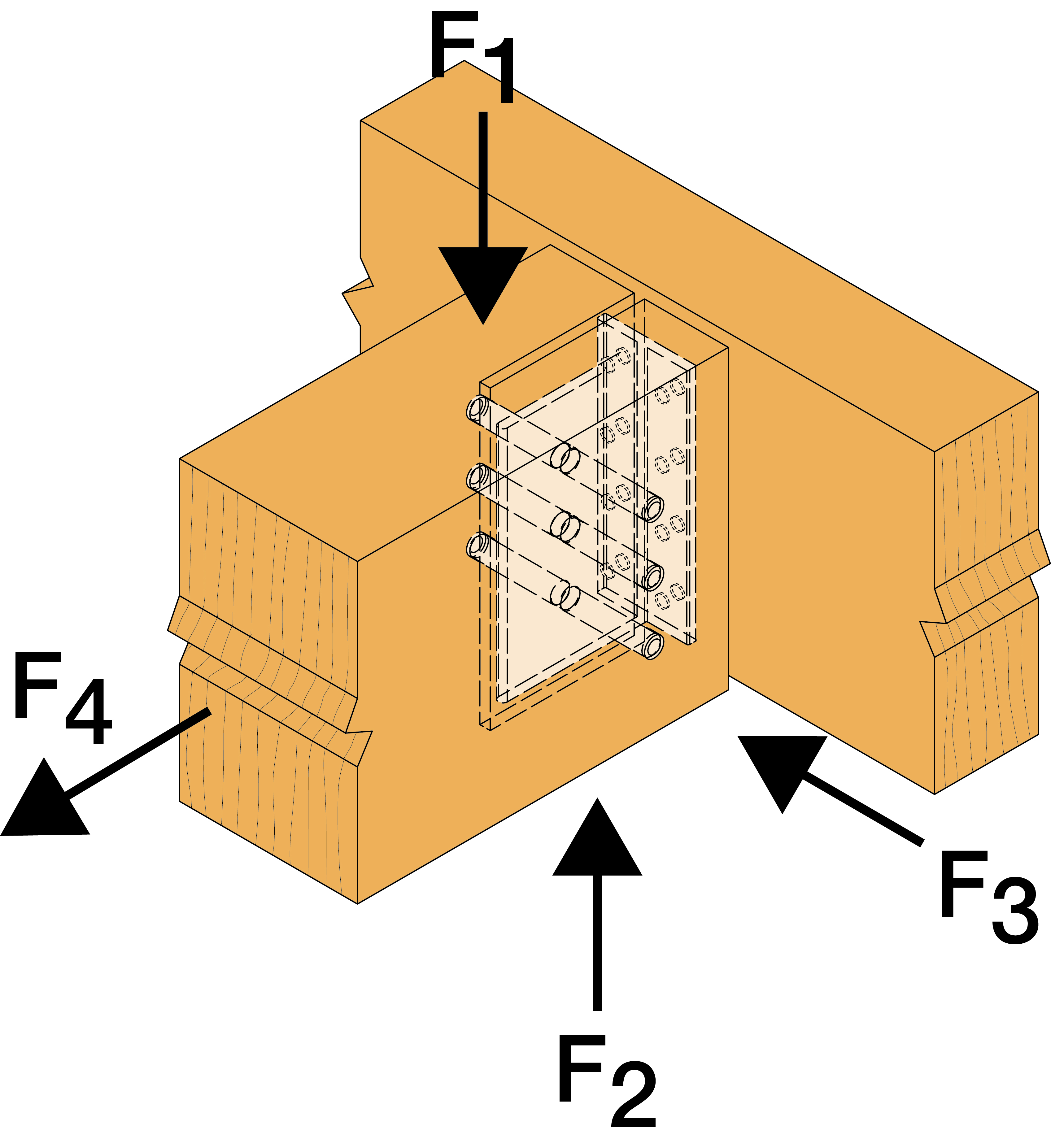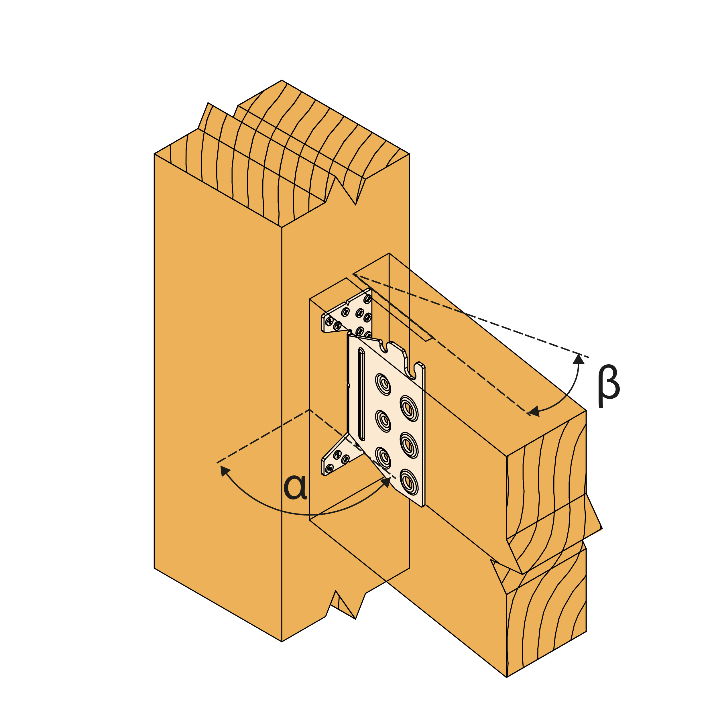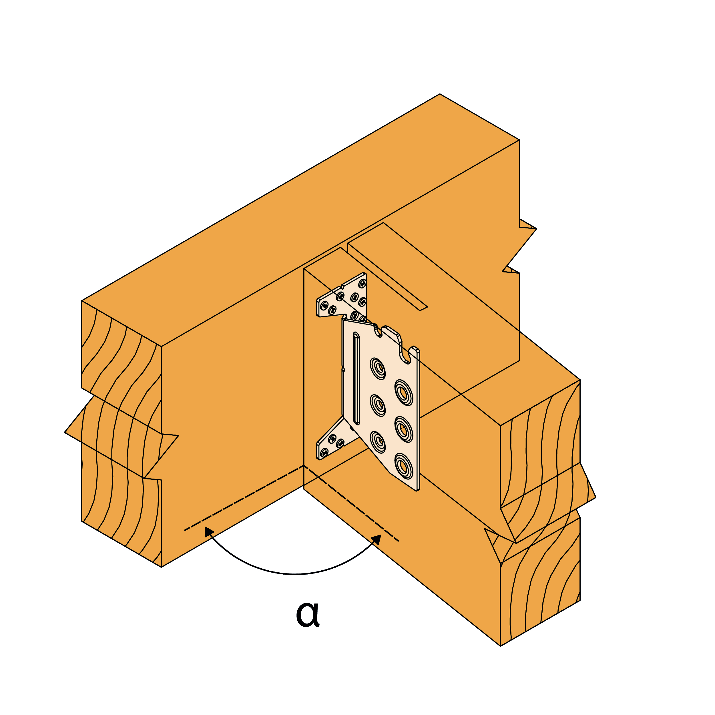 Produktkarakteristiske egenskaper – Trebjelke til trebjelke – fullspikring – med helling og skjevhet α=30