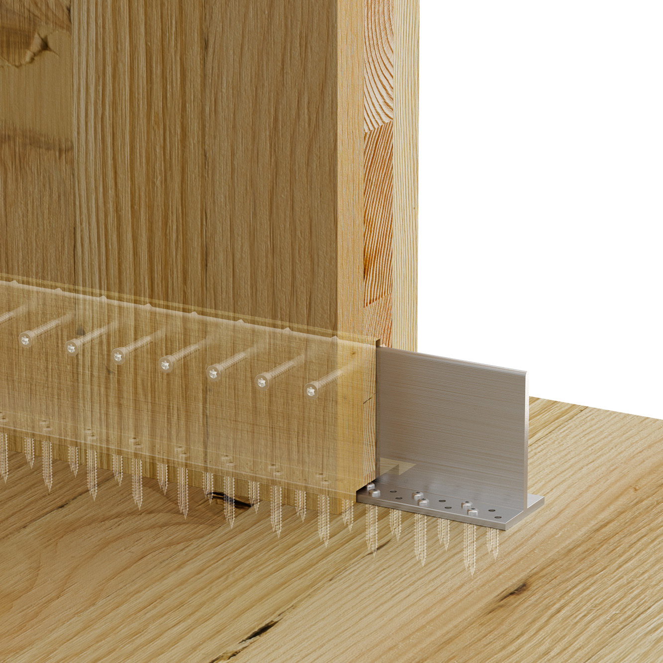 De CE-merkede SDD selvborende dyblene gir en effektiv innfesting av til limtre og CLT i kombinasjon med bjelkebærere i aluminium.