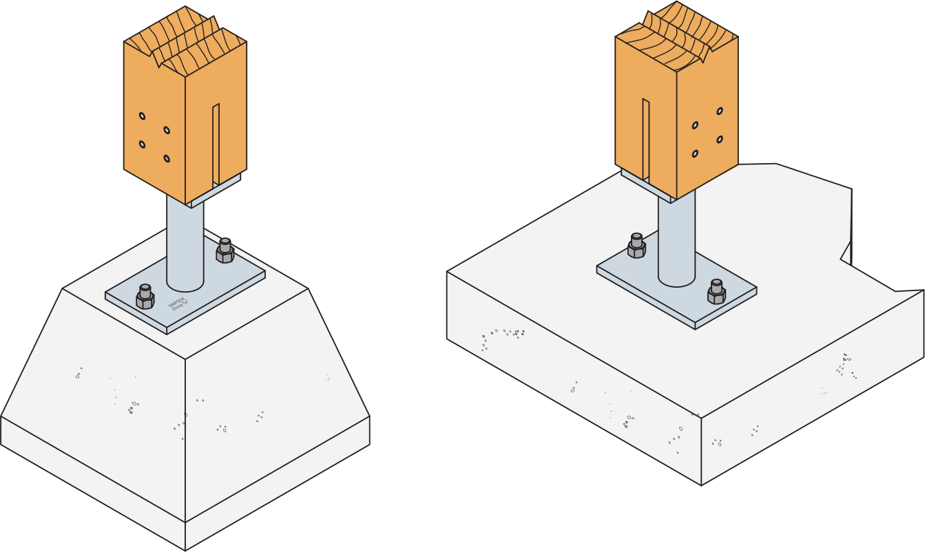 Søyleskoene brukes til understøtting av tresøyler med bredder fra 80 mm og oppover.