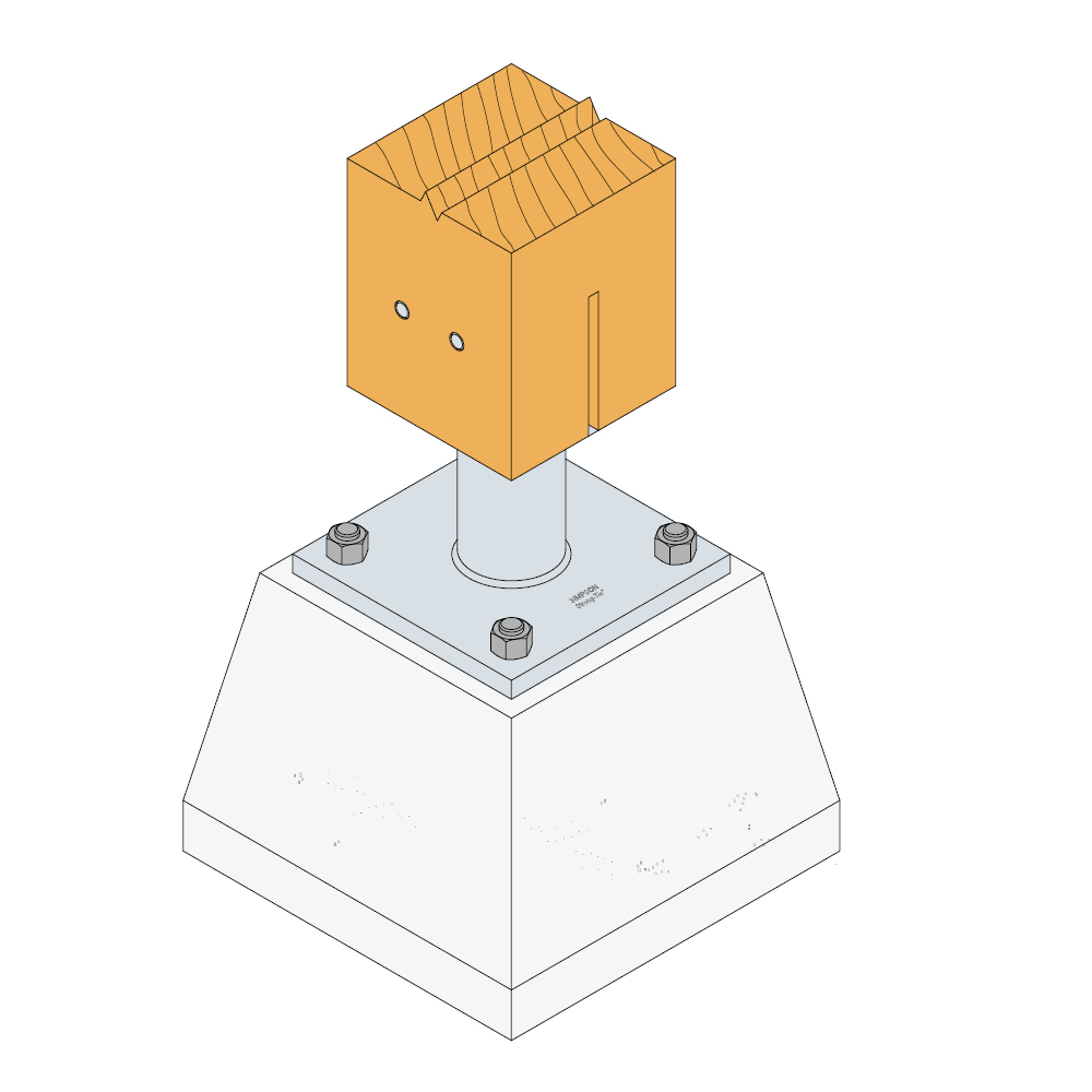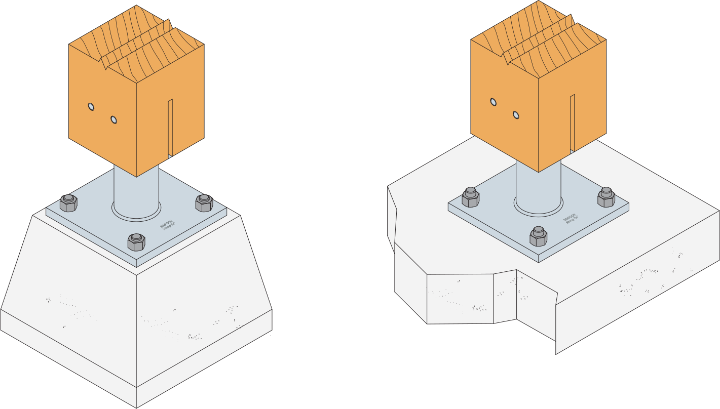 Søyleskoene brukes til understøtting av tresøyler med bredder fra 80 mm og oppover. Rørene til PIS søylesko støpes inn i betong. Avstanden fra den vannrette platen til betongoverkanten skal maksimalt være 150 mm.