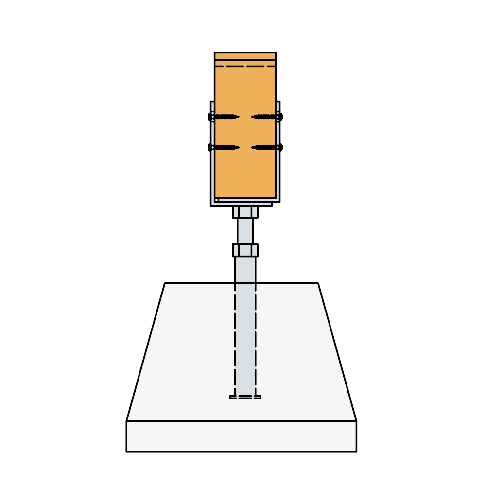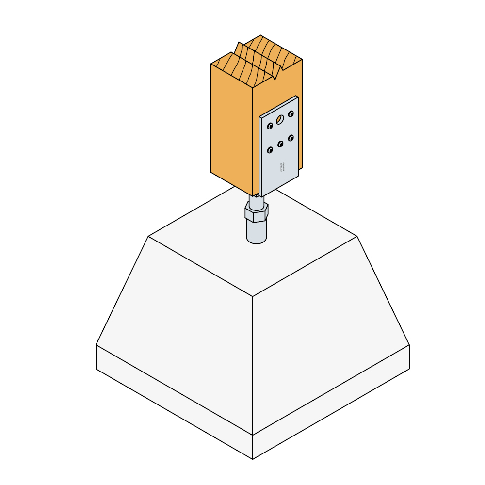 Søylesko PVD brukes til understøtting av tresøyler med bredde fra 80 mm og oppover. Søyleskoen er både høyde- og breddejusterbar. Røret til PVD søylesko støpes minimum 150 mm inn i betong. Fordi søyleskoene er høydejusterbare, vil avstanden fra den vannrette platen til betongoverkanten (her benevnt som g) kunne variere, og bæreevner er angitt for forskjellige avstander av g. Søyleskoene kan oppta trykk, trekk og vannrett last.