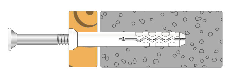 Spikerplugg er en praktisk plugg for all gjennomstikksmontasje. Bor hullet og slå pluggen inn med hammer. Monteringen er rask og gir et kostnadseffektivt feste. Spikerpluggen er utstyrt med et krysspor for enkel demontering hvis ønsket senere.