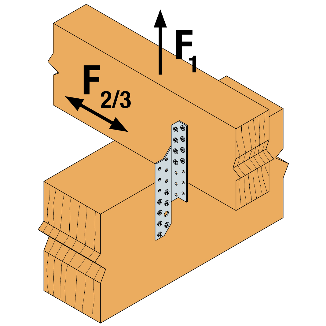 ZPRO SPF takåseankere brukes til forankring mot sug i utendørs konstruksjoner, f.eks. terrasser. Beslagene kan også absorbere horisontale krefter. Avhengig av belastning brukes 2 eller 4 beslag pr samling. Når du bruker 2 beslag, plasser dem diagonalt overfor hverandre.